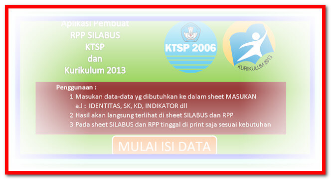 Aplikasi Pembuat RPP Dan Silabus Kurikulum 2013 Format Excel.Xlsx Versi Terbaru - Aplikasi Untuk Membuat RPP Silabus Kurikulum 2013 dan KTSP merupakan sebuah aplikasi yang sanggup membuat RPP dan silabus secara otomatis baik kurikulum 2013 maupun kurikulum KTSP, aplikasinya pun gampang dioperasikan alasannya ialah berfomat ms.excel sehingga akan gampang diedit untuk diubahsuaikan dengan keadaan sekolah.