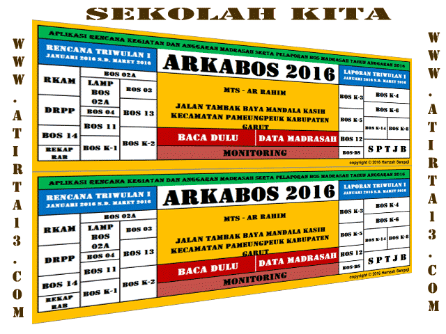 ARKABOS Merupakan Aplikasi Rencana Kegiatan dan Anggaran Pelaporan Bantuan Operasional Sekolah ( BOS ) , dalam Aplikasi ini Semua Kegiatan dan Rencana Anggaran Pelaporan BOS sudah di sesuiakan dengan Juknis BOS Tahun 2016 ( Download File Nya Klik di sini ).